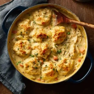 This comforting Chicken and Dumplings Recipe is the ultimate cozy dinner made with tender chicken, creamy broth, hearty vegetables, and soft homemade dumplings. It’s a classic one-pot meal that brings warmth and comfort to the table, perfect for family dinners or chilly evenings.