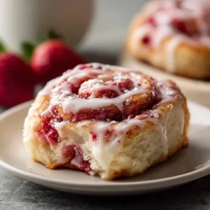 Soft homemade Strawberry Cinnamon Rolls filled with fresh strawberry filling and cinnamon.Baked until fluffy and golden, then topped with sweet vanilla glaze.Perfect for breakfast, brunch, or special occasions.