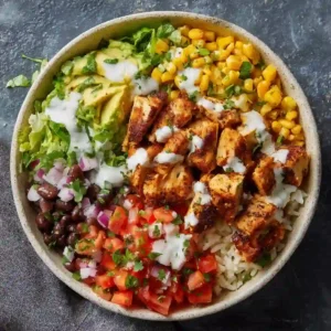 This Chicken Burrito Protein Bowl is a fresh, vibrant, and satisfying meal packed with bold flavors and wholesome ingredients. Perfect for busy weeknights or meal prep, this protein-rich bowl combines juicy chipotle chicken, zesty cilantro lime rice, and colorful toppings for a complete and nourishing dish.