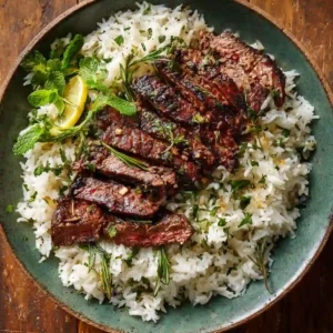 This Herby Lemon Garlic Steak and Rice is a bright, zesty, and satisfying meal that comes together in just 30 minutes. Juicy marinated steak paired with fresh herb rice creates a delicious balance of flavor and texture, perfect for busy weeknights or relaxed family dinners.