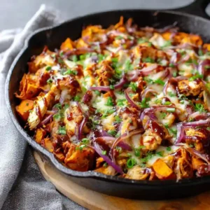 This BBQ Chicken Sweet Potato Skillet is the ultimate easy one pan dinner that brings together smoky, sweet, and cheesy flavors in every bite. Perfect for busy weeknights, this dish is hearty, satisfying, and incredibly simple to prepare.
