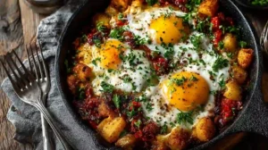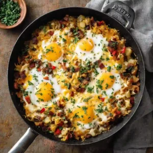 This Breakfast Skillet is rich, filling, and incredibly easy to prepare in one pan. It’s perfect for busy mornings or relaxed weekend brunches. The combination of crispy potatoes, fluffy eggs, and melted cheese makes it family-friendly and customizable to your taste.