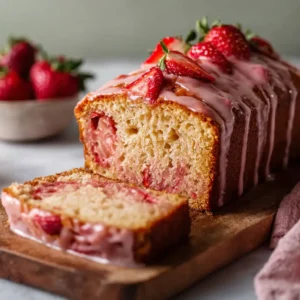 If you’re looking for a delicious way to use up leftover starter, this sourdough discard strawberry bread is soft, moist, and bursting with fresh strawberry flavor. It’s an easy quick bread topped with a sweet strawberry glaze, perfect for breakfast, dessert, or a cozy snack.