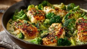 This Creamy Garlic Chicken & Broccoli Skillet is a comforting, one-pan meal packed with rich flavor and wholesome ingredients. Tender chicken, crisp broccoli, and a silky garlic cream sauce come together for a quick and satisfying dinner.