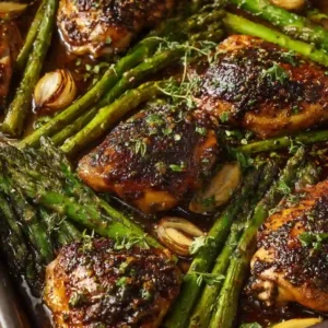This Balsamic Chicken Sheet Pan Meal is an easy dinner that feels fresh, hearty, and full of flavor. Juicy chicken, tender asparagus, sweet onion, and tangy balsamic dressing come together on one pan for a simple meal that looks impressive but takes very little effort.