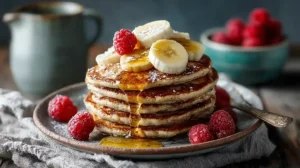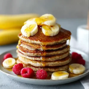- Serve Healthy Banana Oat Pancakes with fresh fruit and maple syrup.
