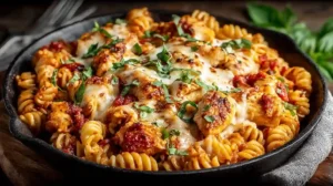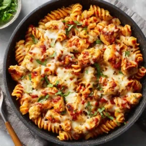 This Chicken Parmesan Pasta Skillet is a comforting, cheesy one-pan dinner that combines tender chicken, rich pasta sauce, and perfectly cooked pasta. It’s a quick and satisfying meal that brings classic Italian-inspired flavors to your table with minimal effort.