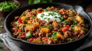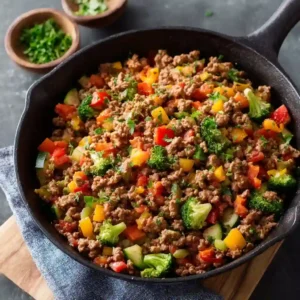 This Healthy Ground Beef Vegetable Skillet is full of flavor while staying light and wholesome. It’s easy to prepare in under 30 minutes, making it ideal for families or meal prep. The mix of tender beef and crisp vegetables creates a delicious texture, and it’s naturally low-carb and gluten-free.