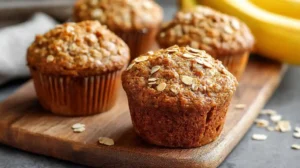 Freshly baked Healthy Banana Oatmeal Muffins made with ripe bananas and whole wheat flour, ideal for a healthy snack.