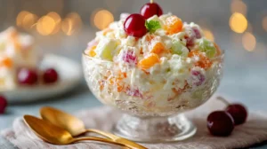 Ambrosia Salad Recipe is a timeless, creamy fruit salad that brings together juicy fruits, fluffy cream, and sweet marshmallows in every bite. This nostalgic dessert is perfect for holidays, potlucks, or an easy family treat.
