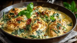 If you’re craving a comforting, rich, and quick dinner, this One-Pan Creamy Chicken and Spinach is exactly what you need. It’s packed with tender chicken, a velvety garlic cream sauce, and fresh spinach—all made in one pan for easy cleanup.