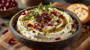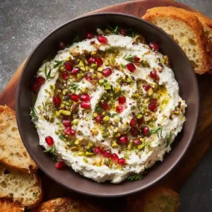 This Whipped Feta Dip with Pistachios is a creamy, tangy, and slightly sweet appetizer that feels both elegant and effortless. With rich feta, smooth yogurt, crunchy pistachios, and bursts of pomegranate, this dish brings bold flavor and beautiful presentation to any table.