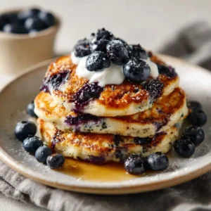 These pancakes are light, satisfying, and incredibly easy to make. The combination of Greek yogurt and oat flour creates a tender texture, while juicy blueberries add natural sweetness. They’re family-friendly, quick to prepare, and perfect for busy mornings.