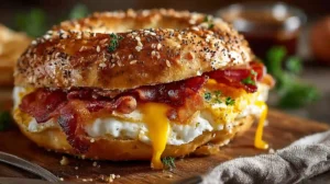 This Bagel Breakfast Sandwich is the ultimate way to start your day with a warm, satisfying bite. Packed with fluffy eggs, melted cheese, and crispy turkey bacon, this recipe brings together bold flavors and simple ingredients in minutes.